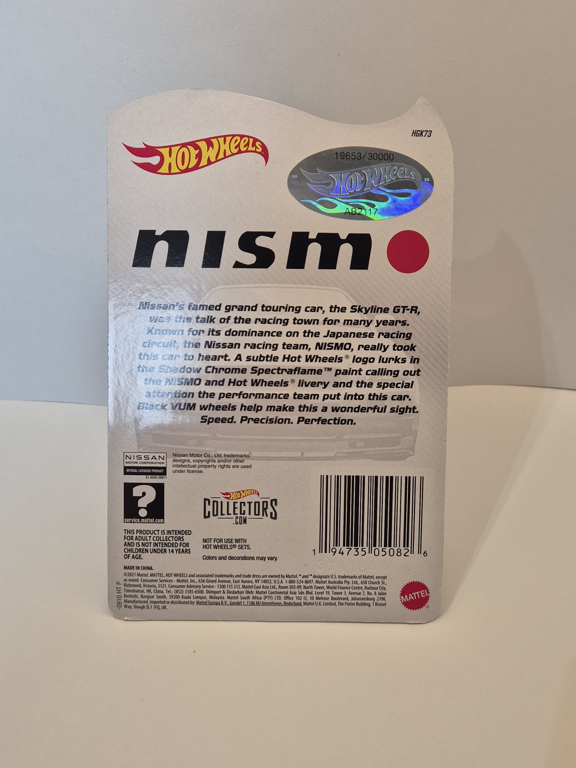 2022 Japanese Convention Car, we’re recasting the fan-favorite Nissan Skyline GT-R. Featuring Spectraflame black over chrome for a dark sheen, this third colorway makes a statement wherever it rolls. With special touches like the iconic NISMO livery and a ghosted Hot Wheels logo on the door, this model is made to show off.